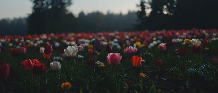 Tulip garden with evening light