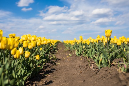 Yellow tulips in a spring garden field