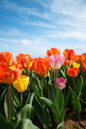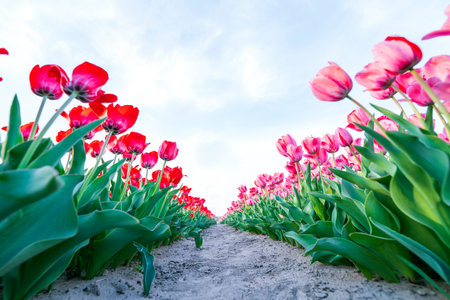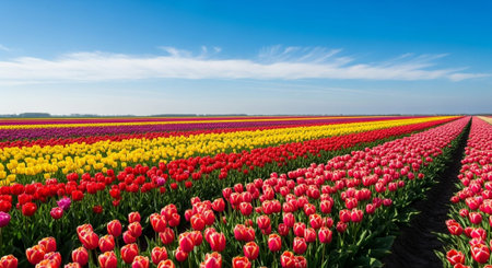 Vibrant Tulip Field in Full Bloom.