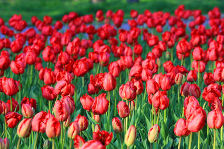 Background with many red tulips