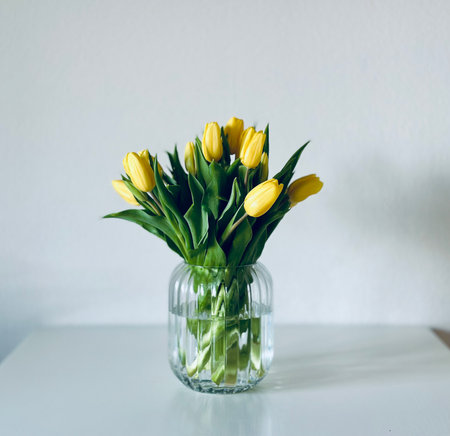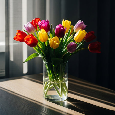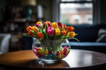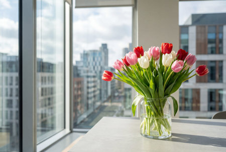 AI Generated. Vibrant bouquet of tulips adding a touch of spring to a contemporary interior
