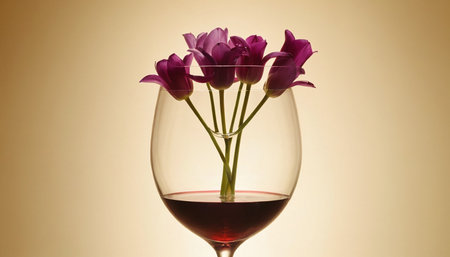 tulips in a glass of red wine on a light background