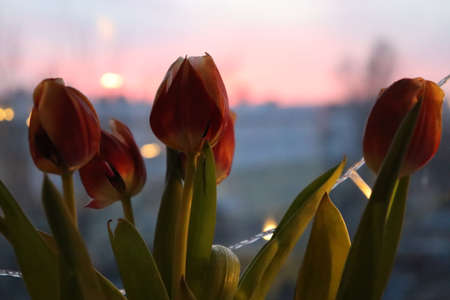 beautiful tulips and the sunset