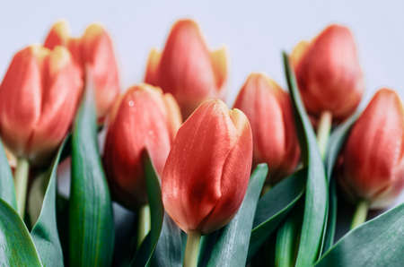 Istanbul, Turkey - March 06, 2016: Red Tulips beautiful bouquet of tulips. tulips in spring colourful during Tulip festival in Istanbul