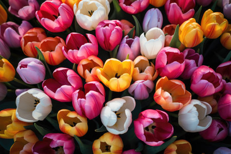 Vibrant spring tulip fields displaying a colorful array of blossoms in full bloom