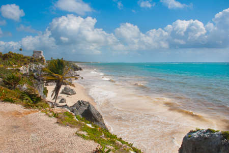 Tulum, Yucatan, Mexico: Archeological ruins built by the Mayas. Ancient city