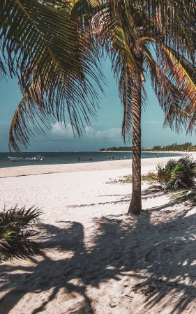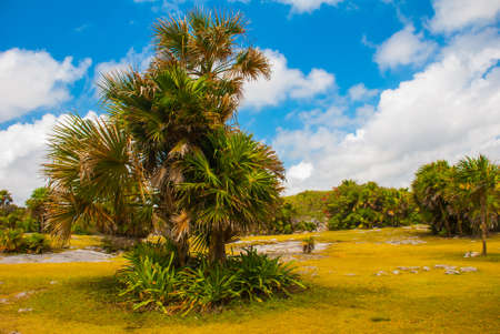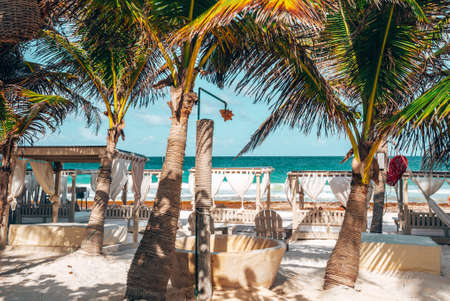 Beautiful tropical Mexican landscape with views of palm trees. Tulum, Mexico, Yucatan, Riviera Maya.