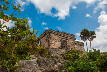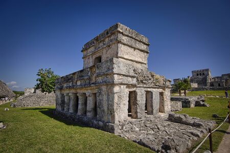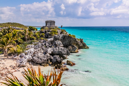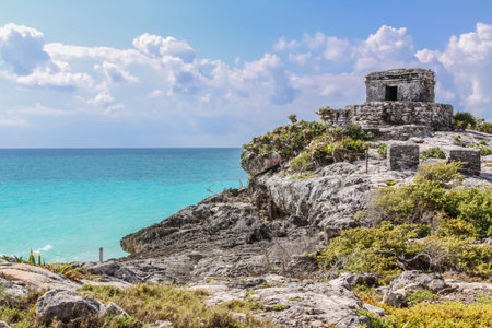 God of Winds Temple. Panorama of a beautiful landscape with views of the Caribbean sea. Tulum, Mexico, Yucatan, Riviera Maya.