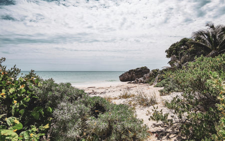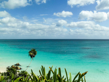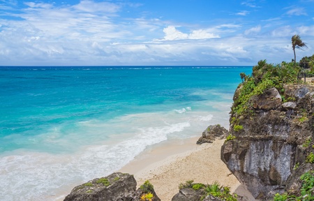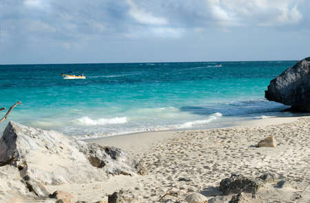 Stunning Caribbean beach near Tulum ruins in Mexico