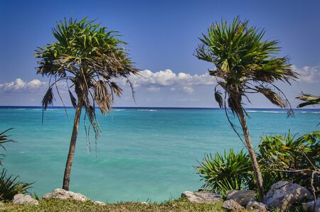 Panoramic views with palm trees of Tulum, Yucatan Peninsula