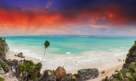 Tulum, Yucatan, Mexico. Mayan ruins on the beach.