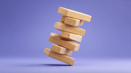 A captivating visual of wooden blocks delicately stacked against a soft purple background, embodying balance and creative design in minimalist style.