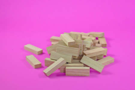 Dominino wood, stacking many pieces of wood on the floor