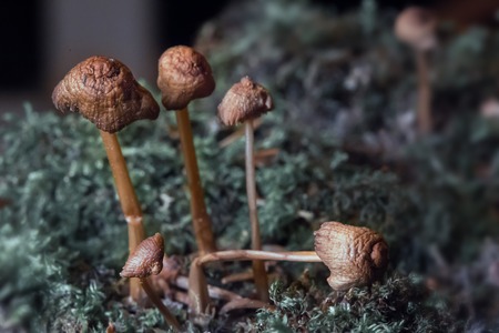 close-up of toadstool mushrooms outdoor in sunny backyard shot at shallow depth of field