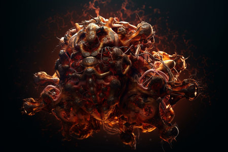 Cancer cell growth uncontrollably over tissue, Tumor infection cells and spreading, Invasive inflammation and cancerous metastasis. reproduce by duplicating, cells expanding, Dise