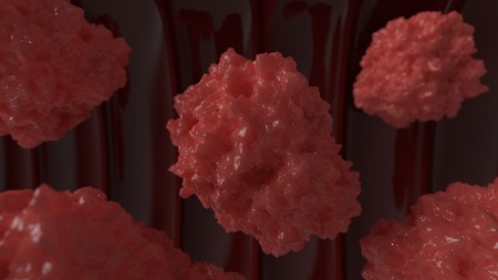 3d rendering red cancer cell in blood
