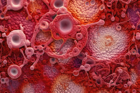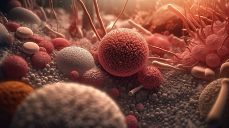 Macro shot of microbes cells and bacteria, 3d microscopic virus close up, abstract background or fantasy wallpaper, by ai generative