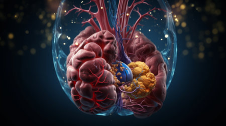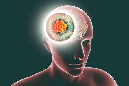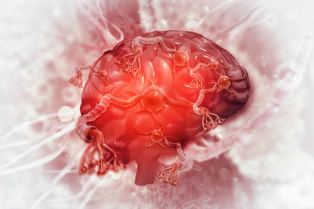 Brain mucormycosis, a brain lesion caused by fungi Mucor, also known as black fungus, 3D illustration