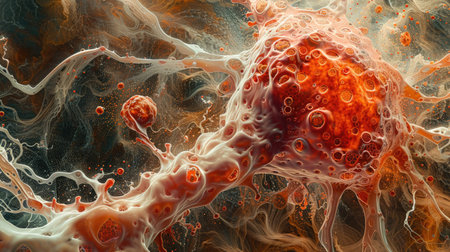Cancer cell growth uncontrollably over tissue, Tumor infection cells and spreading, Invasive inflammation metastasis cancerous. reproduce by duplicating, cells expanding, Melanoma