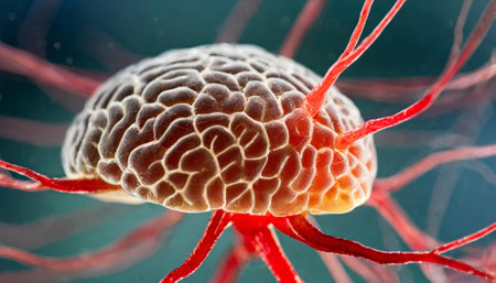 Medical illustration of cancer cell consuming brain tissue, high detail, educational