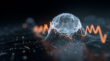 A captivating digital image depicting abstract data waves and fluctuating signals that represent modern technological innovation and connectivity in a dark setting.