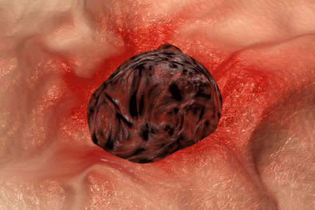 3D illustration of a close-up of skin cancer like the malign melanoma inflaming surrounding tissue.