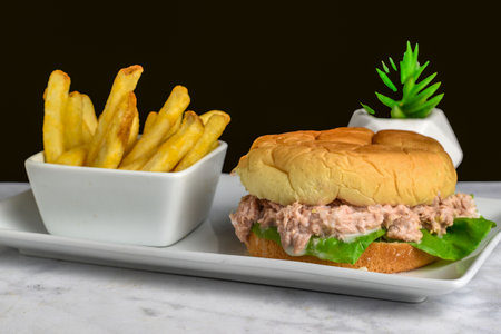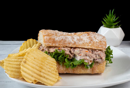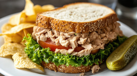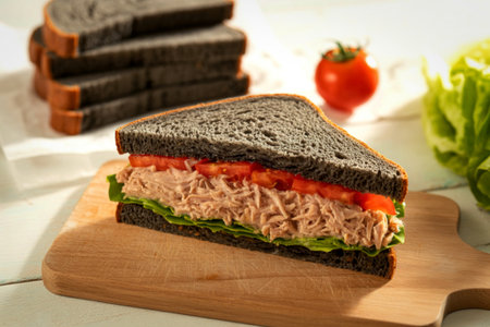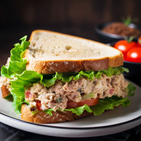 tuna salad sandwich with crunchy lettuce and juicy tomato, created with generative ai