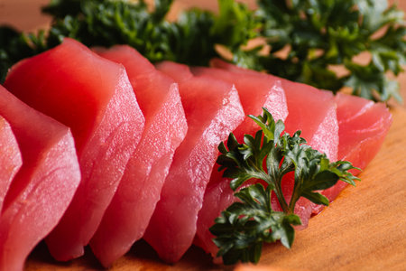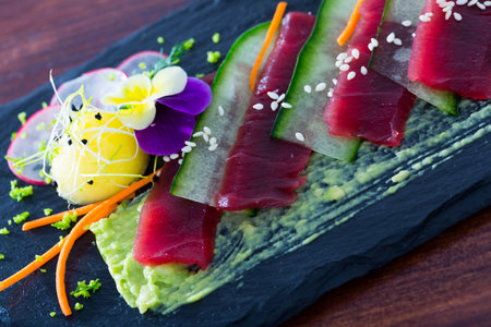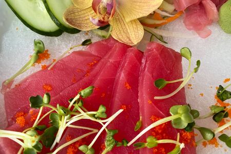 Fresh raw tuna sashimi slices appetizer