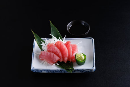 fresh tuna sashimi - japanese food style on black background