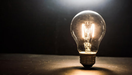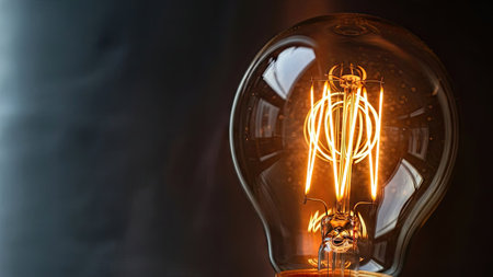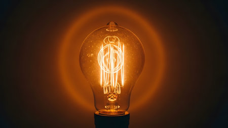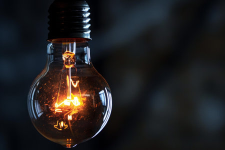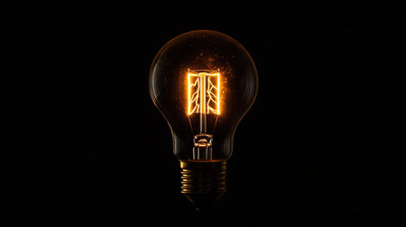 Glowing Incandescent Light Bulb in Dark Background, Symbolizing Bright Ideas and Creative Thinking