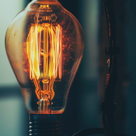 A close-up of a glowing vintage-style lightbulb with warm lighting, creating a cozy and artistic ambiance.
