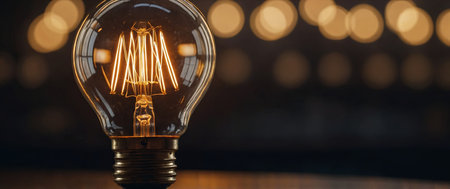 Vintage incandescent light bulb with bokeh background. Warm and nostalgic composition highlighting the beauty of classic lighting and glowing filaments.