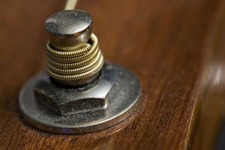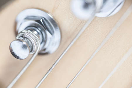 macro photography acoustic guitar peg and metallic string close up instrument objects view with blurred background
