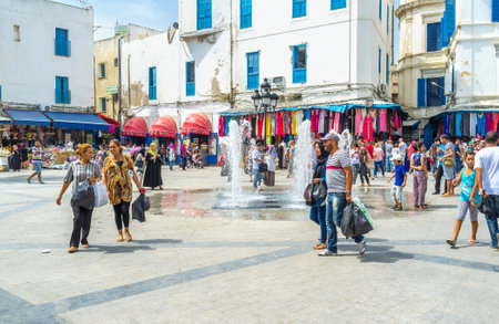 SOUSSE, TUNISIA - SEPTEMBER 3, 2015: There are a lot of market stalls in old Medina, on September 3 in Sousse.