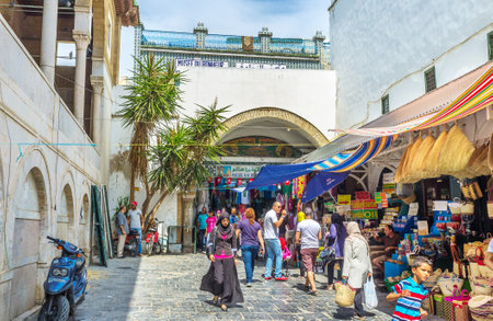 TUNIS, TUNISIA - SEPTEMBER 2, 2015: Medina of Tunis is the tourist district with many landmarks, on September 2 in Tunis.
