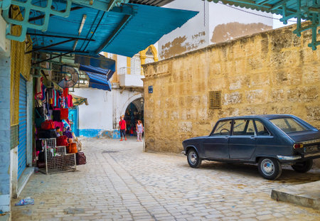 Sousse, Tunisia - 5 November 2019: people walking on the traditional medina at Sousse in Tunisia