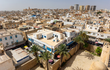 Aerial view of Sousse cityscape from Ribat watchtower, Tunisia