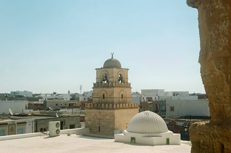 Ancient Great Mosque in Kairouan in Sahara Desert, Tunisia, Africa. An important destination in Tunisia and Northern Africa.