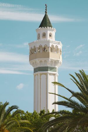 Les Berges du Lac, Tunisia. August 17, 2014. Minaret of the Mosque Cheikh Saleh Kamel situated in an administrative district of Tunis - Les Berges du Lac