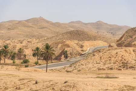 Road in Sahara desert in Tunisia, North Africa.