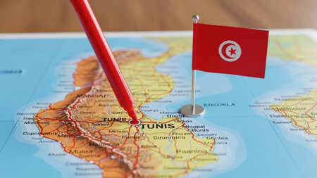 Tunisian flags on a bright backdrop