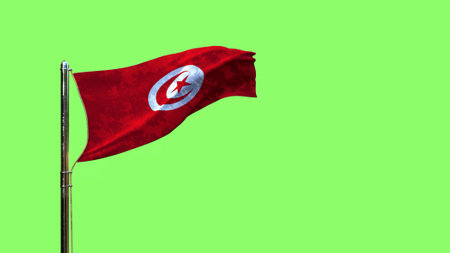 waving flag of Tunisia for any holiday on green screen, isolated - object 3D rendering