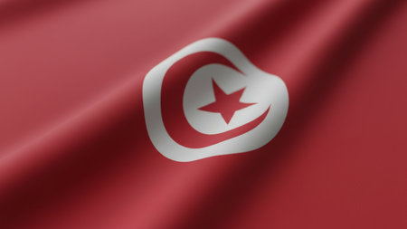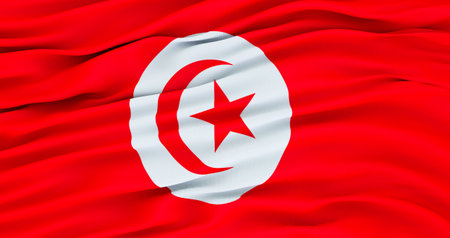 3D illustration of the flag of Tunisia waving in the wind.