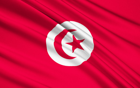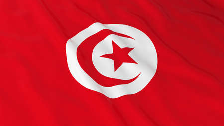 Flag of Tunisia. Flag has a detailed realistic fabric texture.