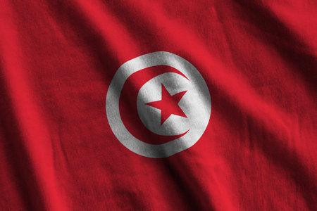 Tunisia flag - Fabric flag of Tunisia country, Background and wallpaper of waving flag by textile.