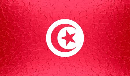 Textured photo of the flag of Tunisia with cracks.