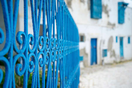 Sidi Bou Said, famouse village with traditional tunisian architecture. White walls, blue shutters and roofs