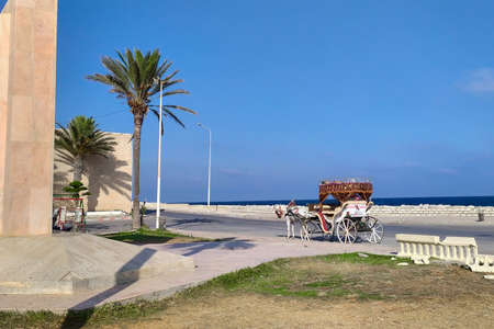 Horse carriages on beachfront promenade. Mahdia, Tunisia