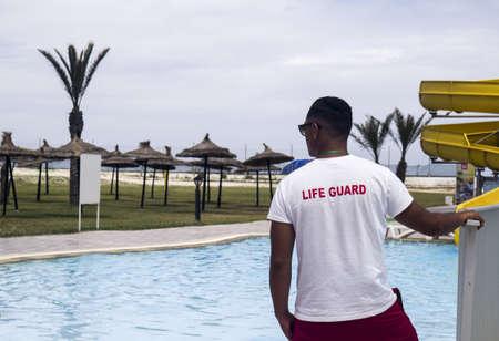 Life guard on duty by swimming pool