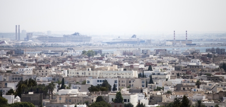CARTHAGE, TUNISIA - June 19: View on Carthage and La Goulette port with cruise ships as seen from Byrsa Hill, Carthage, Tunisia, June 19, 2012.